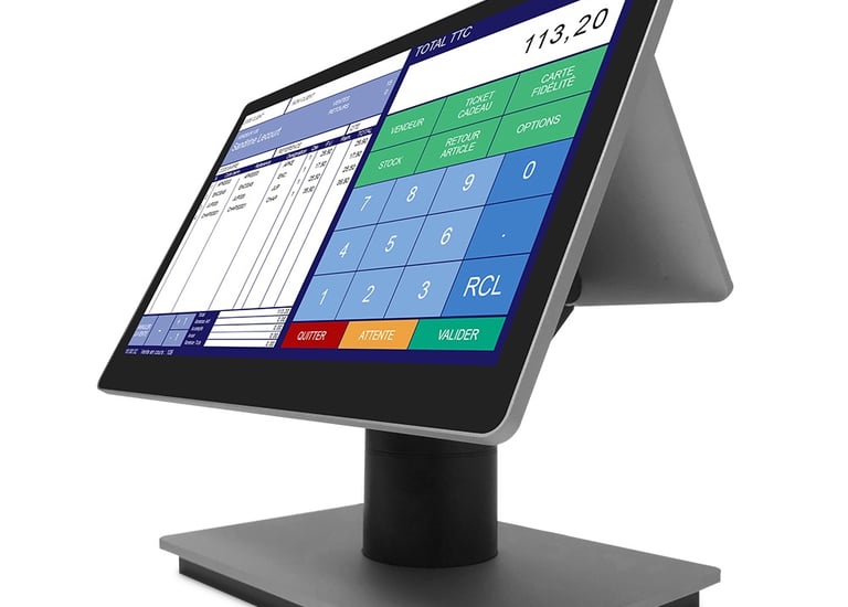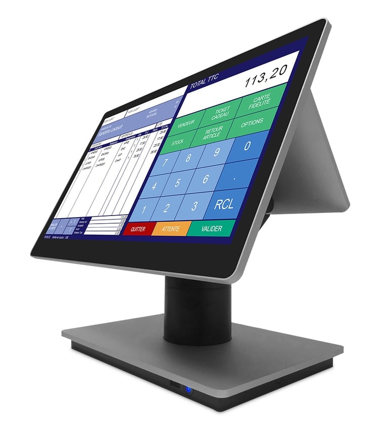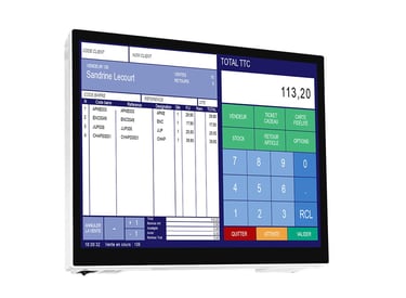 Caisse enregistreuse innovante doté d'un écran ultra-fin Full HD IPS au format 4/3, offrant un confort visuel exceptionnel.